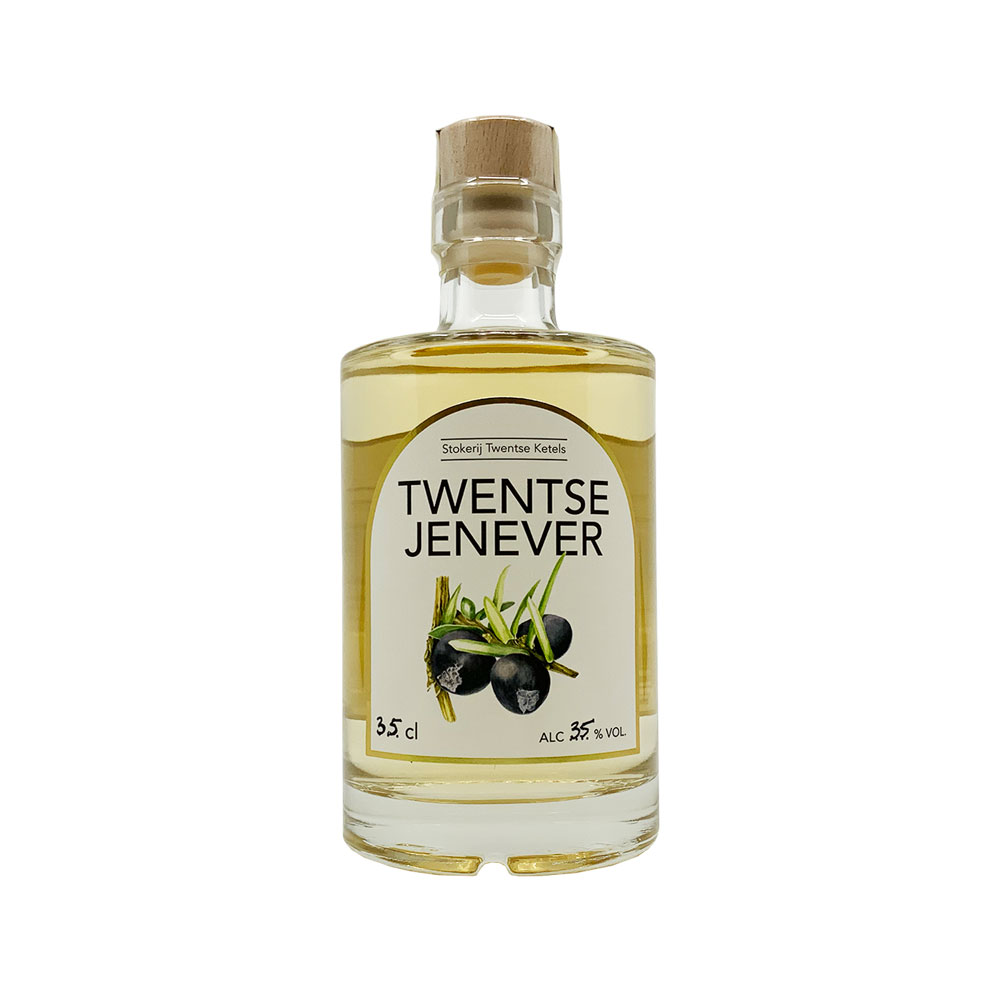 De geur van houtwallen in het Twentse coulissenlandschap en van verse jeneverbessen van Haaksbergse wakels. Het gevoel van het lopen tussen heidevelden aan de ene kant en hoogveenvennetjes aan de andere kant van de zandweg. Dat krijg je allemaal helemaal voor niets bij het drinken van Twentse Jenever. Twentse Jenever van Stokerij Twentse Ketels is gemaakt van 100% zelfgestookte moutwijn en met handgeplukte versgeoogste jeneverbessen uit Het Lankheet, Haaksbergen. In 2020 zaten de wakels vol bessen die, alhoewel klein, een zeer geconcentreerde smaak hebben. We maakten er een mooie oude jenever (volgens de klassieke receptuur) van op ambachtelijke wijze op onze koperen ketels. We kozen dit keer voor een alcoholpercentage van 35%, omdat daarbij de smaakbeleving, bij de gekozen combinatie van botanicals, optimaal bleek.